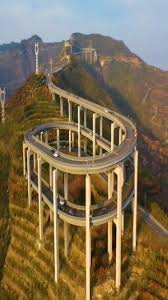 Un puente de 350 metros tiene tres niveles y fue creado para facilitar la conducción debido a las extrañas condiciones del relieve.